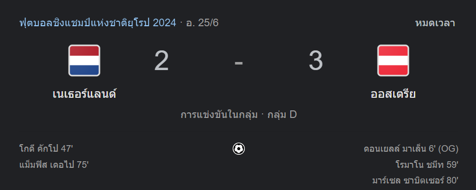 เนเธอร์แลนด์ 2-3 ออสเตรีย